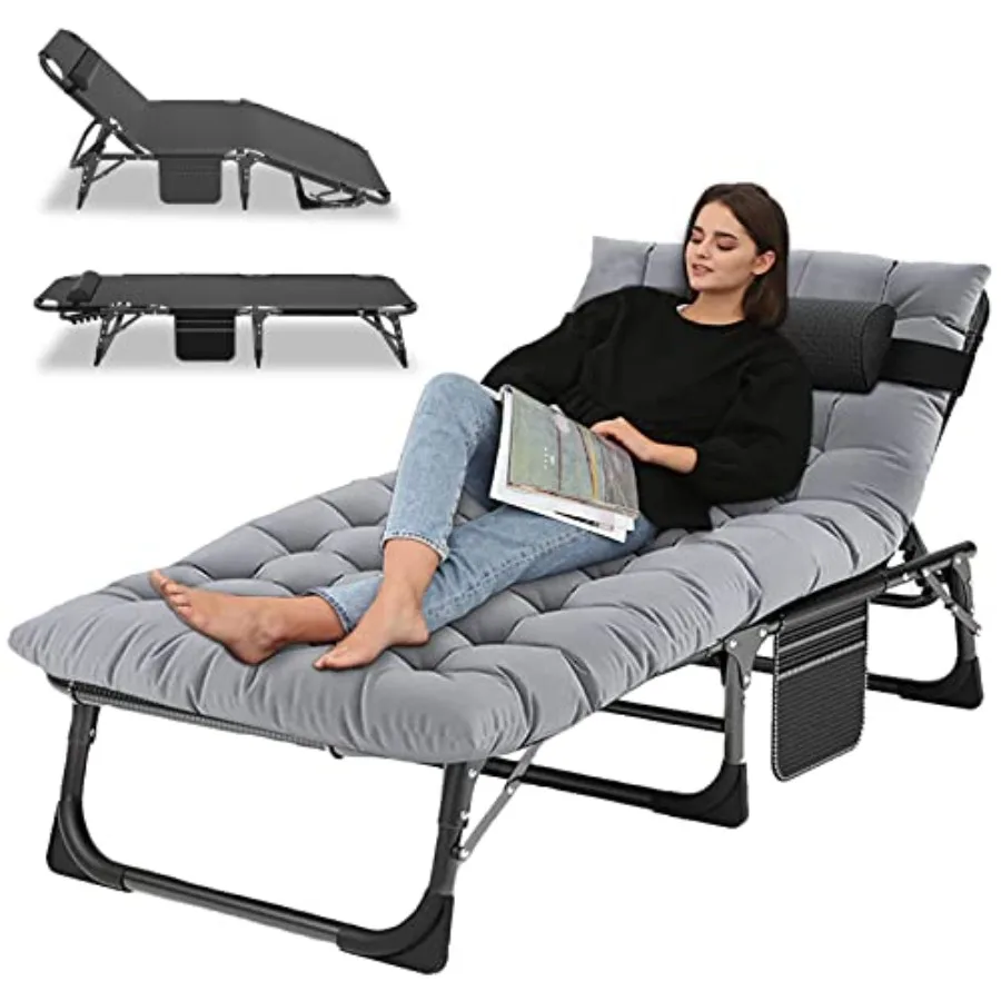 Adjustable 4-Position Camping Cot, 500lbs, Folding Chaise with Pillow, Outdoor Portable Furniture for Adults, Cot Bed for Campin
