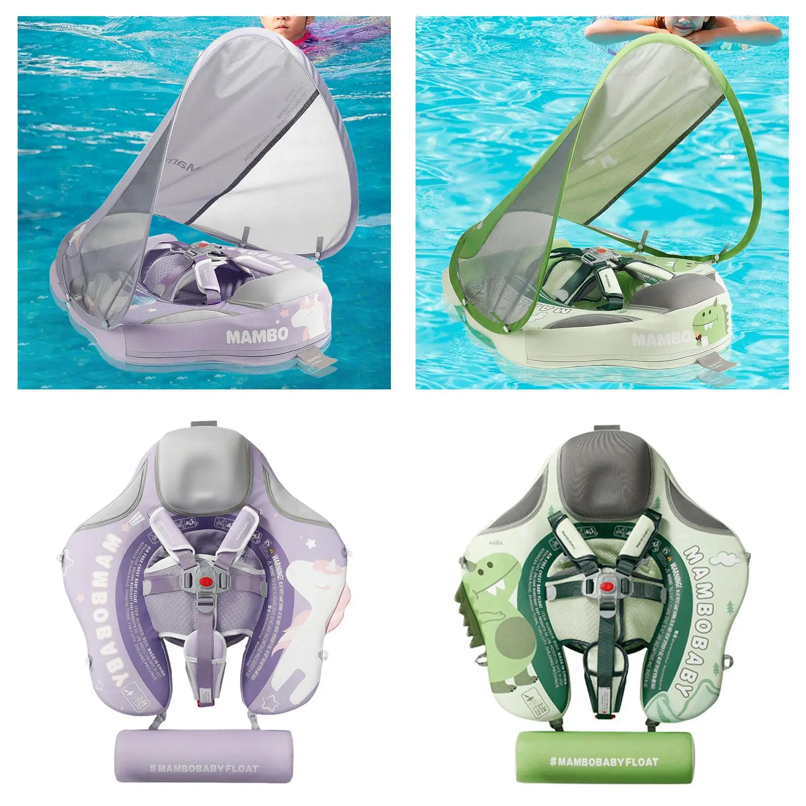 Baby Swim Float Non Inflatable with Canopy Kids for Age of 3-24 Months Swimming Ring Soft Bathtub Accessories Infant Pool Float