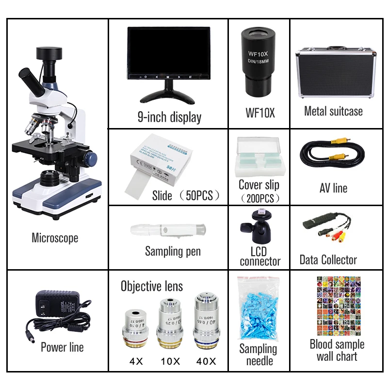 Be the first to review “black background HD Digital biological Lab Microscope led light +9-inch LCD + 5MP electronic eyepiece + USB Data line+Metal box” Cancel reply
