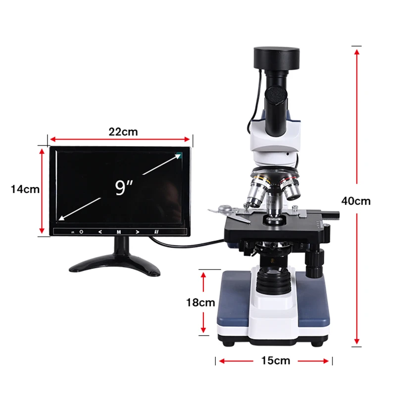 black background HD Digital biological Lab Microscope led light +9-inch LCD + 5MP electronic eyepiece + USB Data line+Metal box