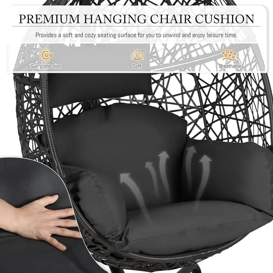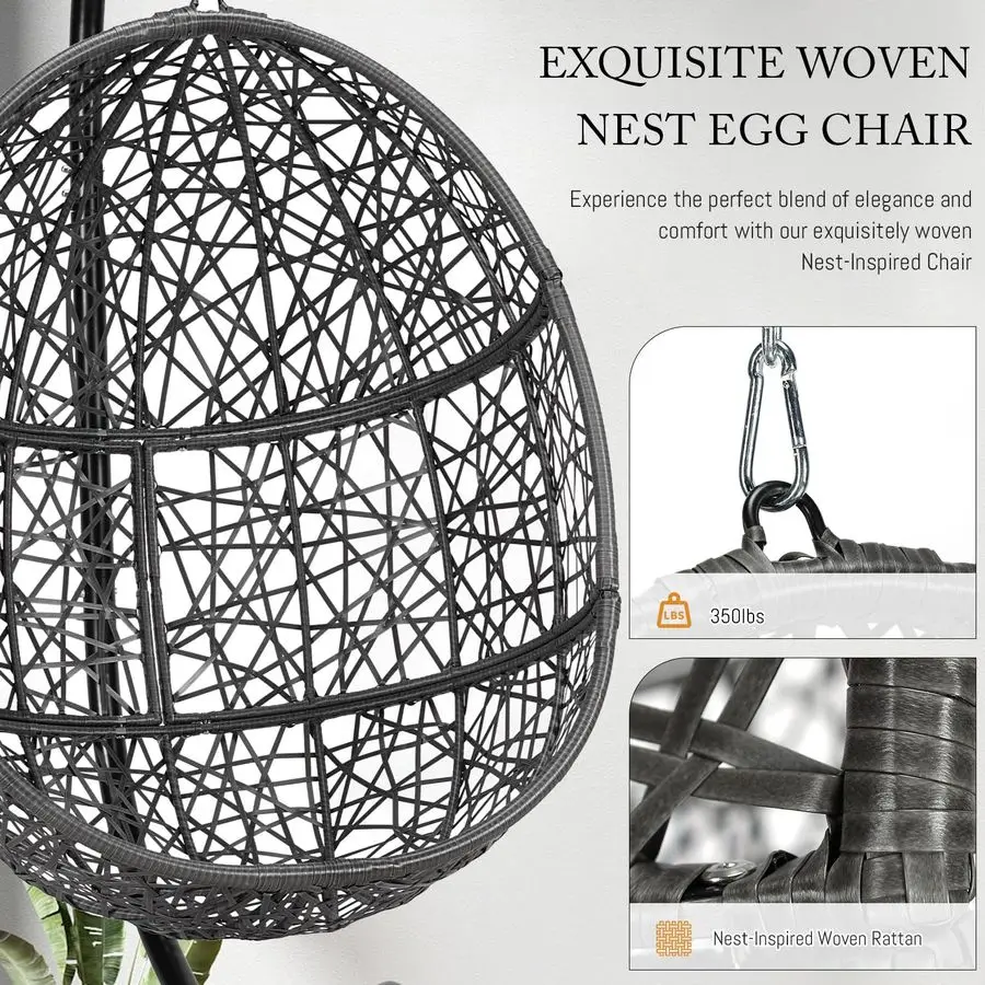 Oversized Hanging Egg Chair with Stand, Indoor Outdoor Wicker Bird Cage Swing Chair, Patio Hammock EggShaped Swinging Chair with