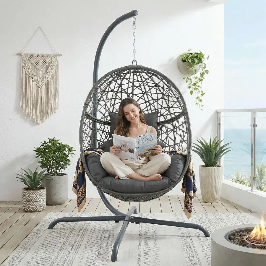 Be the first to review “Oversized Hanging Egg Chair with Stand, Indoor Outdoor Wicker Bird Cage Swing Chair, Patio Hammock EggShaped Swinging Chair with” Cancel reply