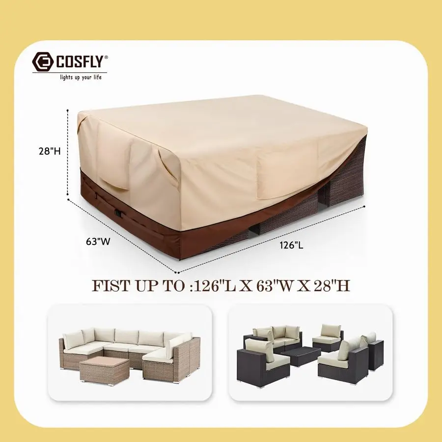 Waterproof Patio Furniture Covers for Table and Chair Set, Rectangular Outdoor Sectional Sofa Covers Large Fits up to 126L x 63